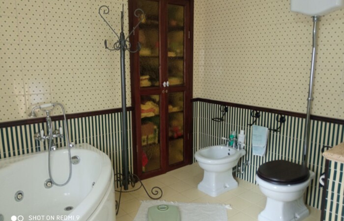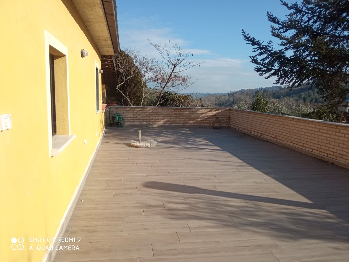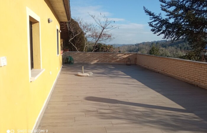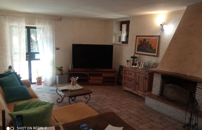 La casa è composta da piano terra con cucina a vista e zona giorno con camino, studio e un bagno, al secondo piano due camere da letto, una delle quali si affaccia su un ampio terrazzo di circa 85 mq con un ampio bagno con vasca idromassaggio. Al piano terra troviamo anche una taverna di circa 70 mq con bagno che si affaccia sul giardino con forno a legna.