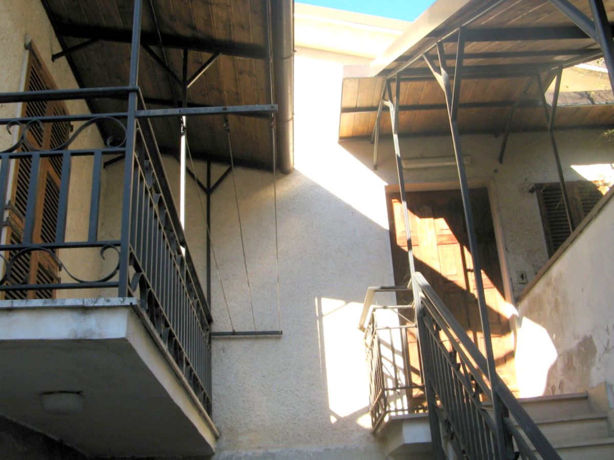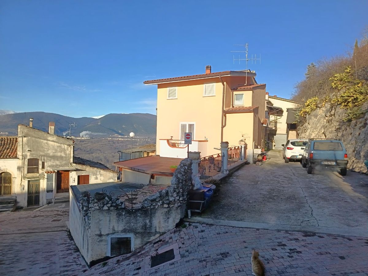 Casa su più livelli di 153 mq.l. con 3 camere da letto e 2 bagni, soggiorni, cucine, garage e cantine in zona tranquilla e raggiungibile in auto, all’inizio del paese. La casa fa parte di una schiera in posizione di testa, è stata costruita prima del 1967 in perfetta aderenza alle norme edilizie vigenti all’epoca e nel 1995 ha avuto un ampliamento dietro regolare Concessione Edilizia.. La costruzione è raggiungibile in auto ed è preceduta da un’ampia Corte in parte comune, tra la schiera delle abitazioni e la parete rocciosa, dove è facile parcheggiare. Nella facciata si presentano in successione l’ingresso al piano terra, il garage frontale e la scala con l’ingresso al piano superiore. La casa costituisce un unico complesso ma funzionalmente è divisa in due settori abitativi autonomi (attualmente non collegati internamente), uno al piano terra ed uno al primo piano. Entrando al piano terra si incontra una stanza con volta a botte adibita a cucina con camino e antica credenza angolare. Di lato un bagno con finestra, doccia e spazio anche per la lavabiancheria. Proseguendo si incontra una camera da letto matrimoniale con finestra verso monti e valle, quindi due stanze con funzione di soggiorno e camera da letto/cameretta, dotate di finestre panoramiche.