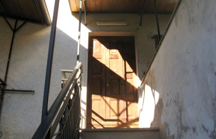 Terraced house of 153 sq m with 3 bedrooms and 2 bathrooms, living rooms, kitchens, garage, and cellars in a quiet area accessible by car, at the entrance to the village. The house is part of a terraced house at the end of the building. It was built before 1967 in full compliance with the building regulations in force at the time, and was extended in 1995 with the required building permit. The building is accessible by car and is preceded by a large, partly shared courtyard between the terraced houses and the rock face, where parking is easy. The façade features a ground-floor entrance, a front-facing garage, and a staircase leading to the upper floor. The house forms a single complex but is functionally divided into two separate residential areas (currently not internally connected), one on the ground floor and one on the first floor. Entering the ground floor, you’ll find a barrel-vaulted room used as a kitchen with a fireplace and an antique corner cupboard. To one side, there’s a bathroom with a window, shower, and space for a washing machine. Further along, you’ll find a double bedroom with a window overlooking the mountains and valley, followed by two rooms serving as a living room and a bedroom/children’s bedroom, each with panoramic windows.