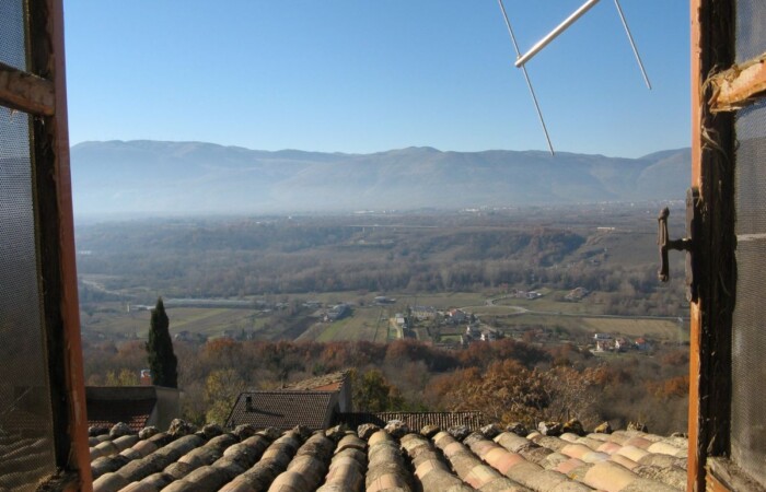 Roccacasale is a village of approximately 800 inhabitants, located 450 meters above sea level, it enjoys a very sunny, panoramic position. The upper part of the village boasts only a few bars, a restaurant, a post office, and the town hall. In the lower part of the village, about 2 km away, there is a large shopping center, a bar, a pharmacy, a hotel with a restaurant, and a petrol station. Municipal parkings are available in the upper part of the village. Trails of varying difficulty and length depart from various levels, offering hikes in the surrounding mountains of the Morrone/Majella National Park, with its woods, plateaus, springs, shelters, and interesting remains of ancient settlements. During the year, but especially in the summer, the village hosts a vibrant array of interesting cultural and recreational activities. The nearby city of Sulmona can also be reached by bus in just a few minutes; by car, the “Pratola-Sulmona” entrance to the A25 motorway is just a 5-minute drive away. The large city of Pescara with its airport and the beaches of the Adriatic Sea are 50 minutes away, the major ski resorts of Abruzzo are 40 minutes away, Rome is 90 minutes away.