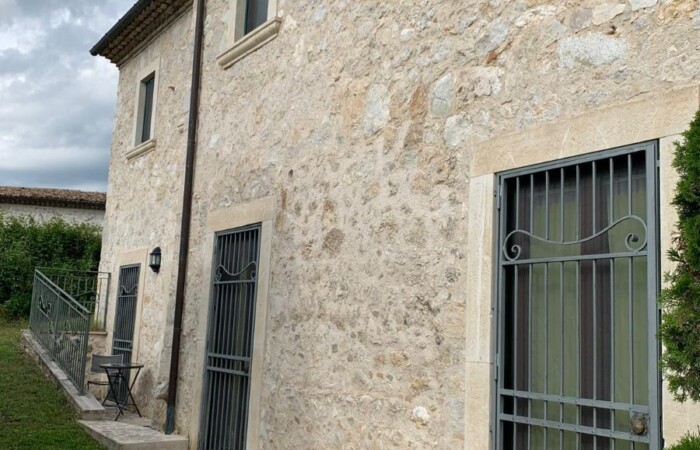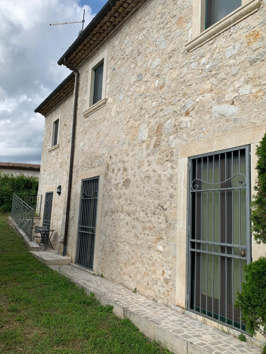 Complex of stone houses renovated and connected to form an elegant, large villa with a lush garden near the Abruzzo National Park.