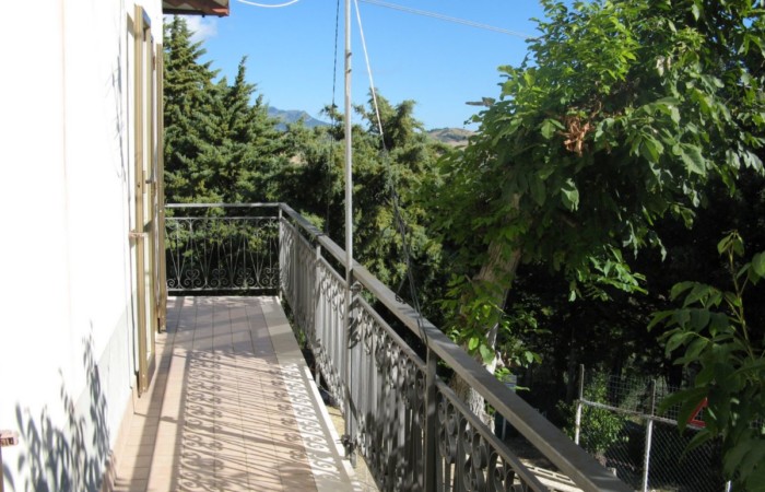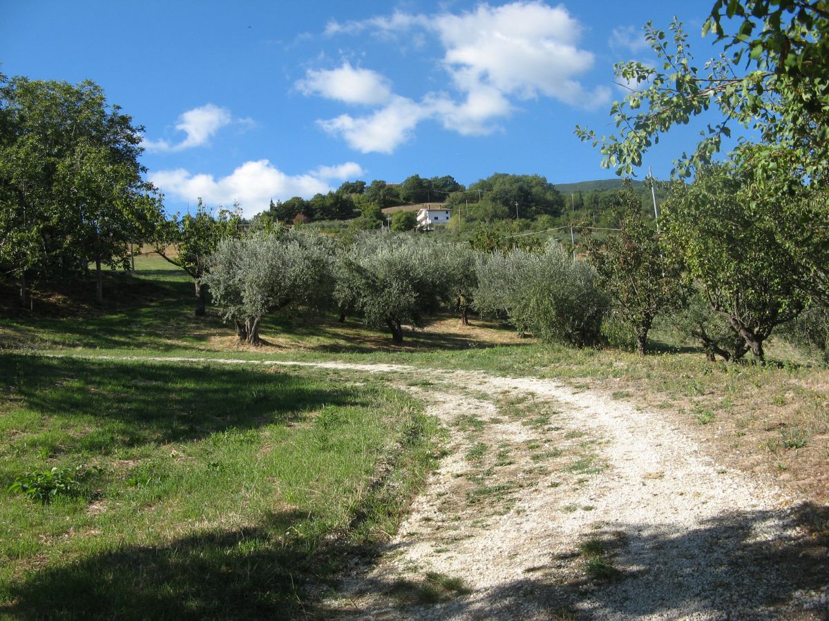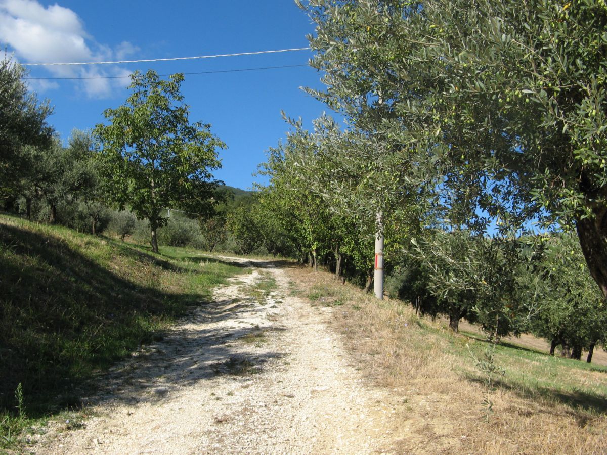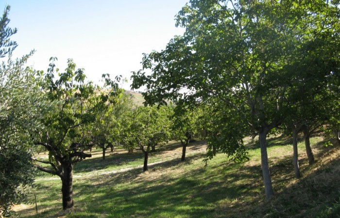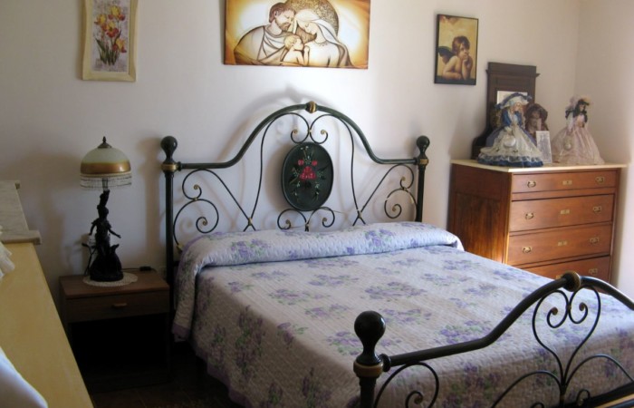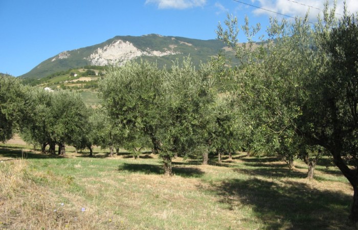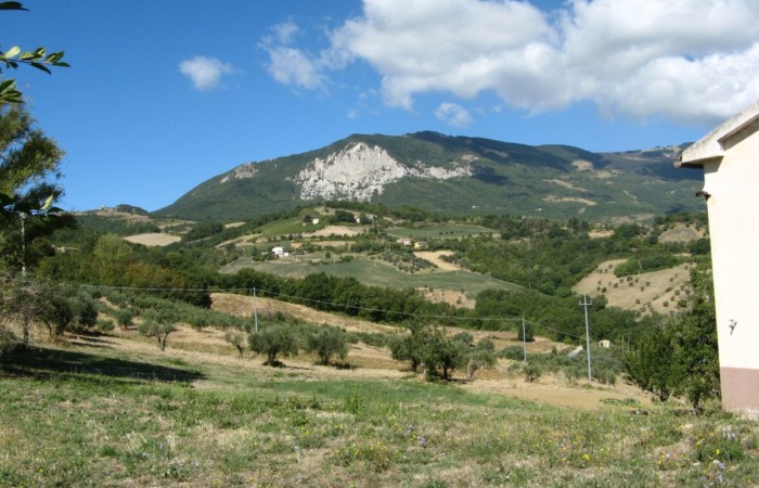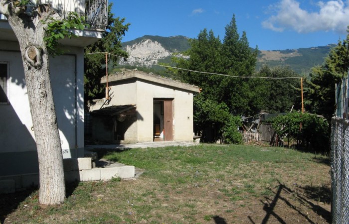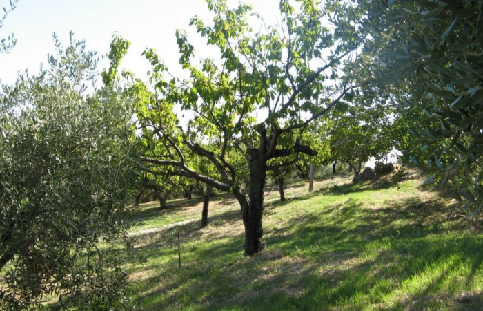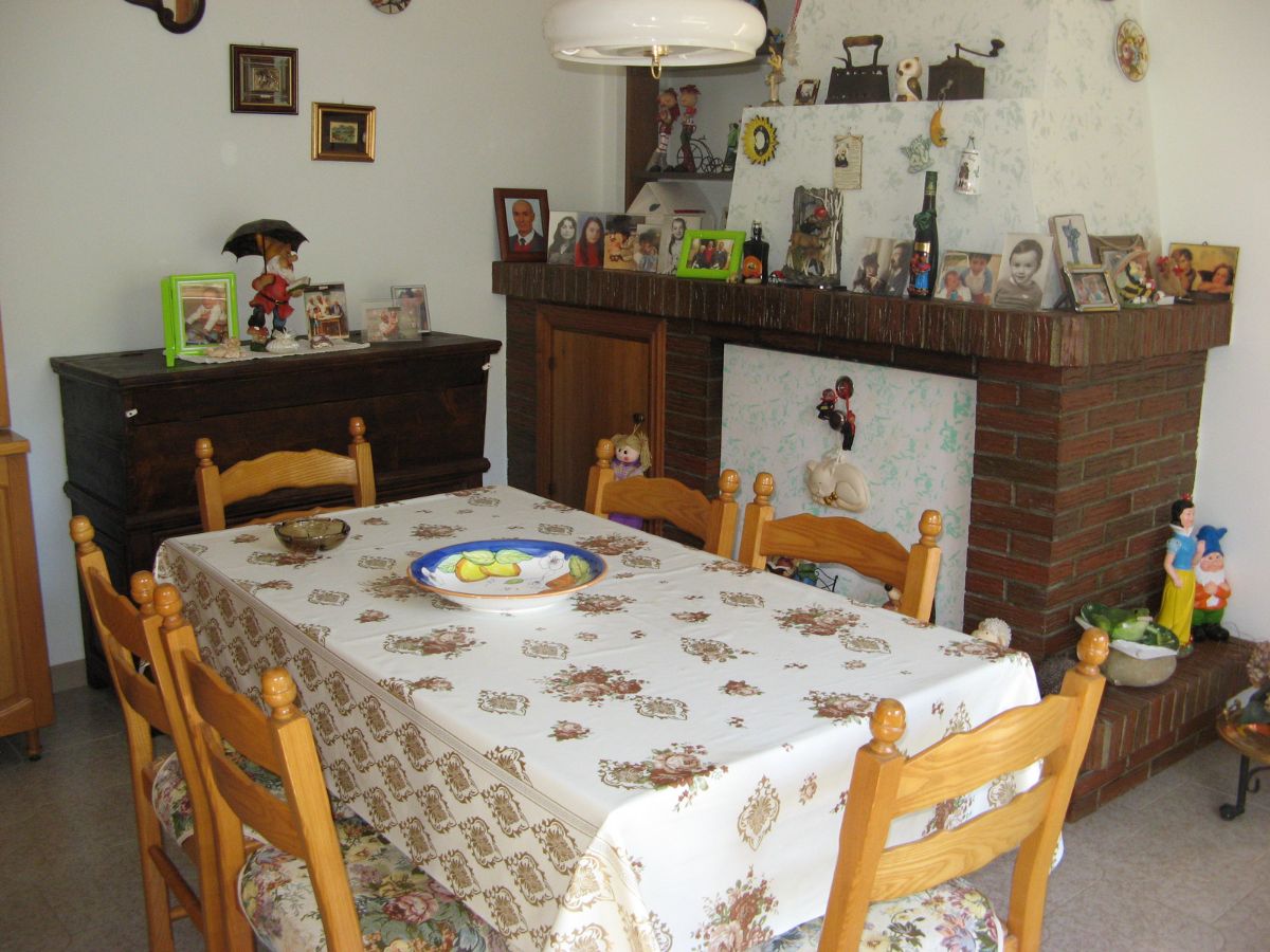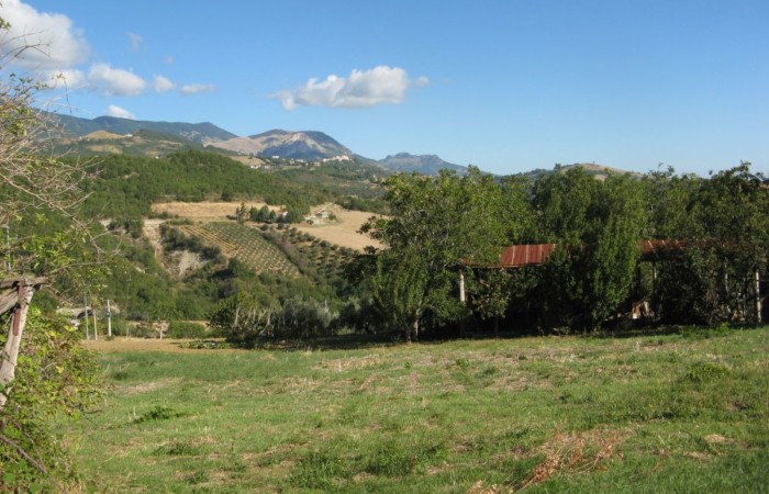 Casa di due livelli risultante dalla fusione di tre unità in schiera (200 mq.l.), ristrutturata ed ultimata nel 1990. La casa è disposta su un leggero pendio ed ha quindi il piano terra totalmente occupato dall’ abitazione (con 2 camere da letto ed 1 bagno) mentre il piano seminterrato è occupato da cantine e locali di servizio. Contigua alla casa è presente un’altra proprietà non abitata (eventualmente acquistabile da altro proprietario) che condivide la strada di accesso e la corte antistante l’ingresso. Davanti alla casa a valle un grande spazio recintato con diversi annessi e locali di utilità (146 mq). I terreni seminativi sono soprattutto alle spalle nel settore rialzato mentre inferiormente si estendono gli oliveti con 123 piante produttive (tot. 11.235 mq).