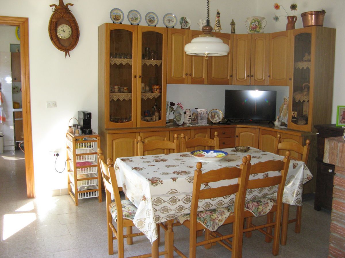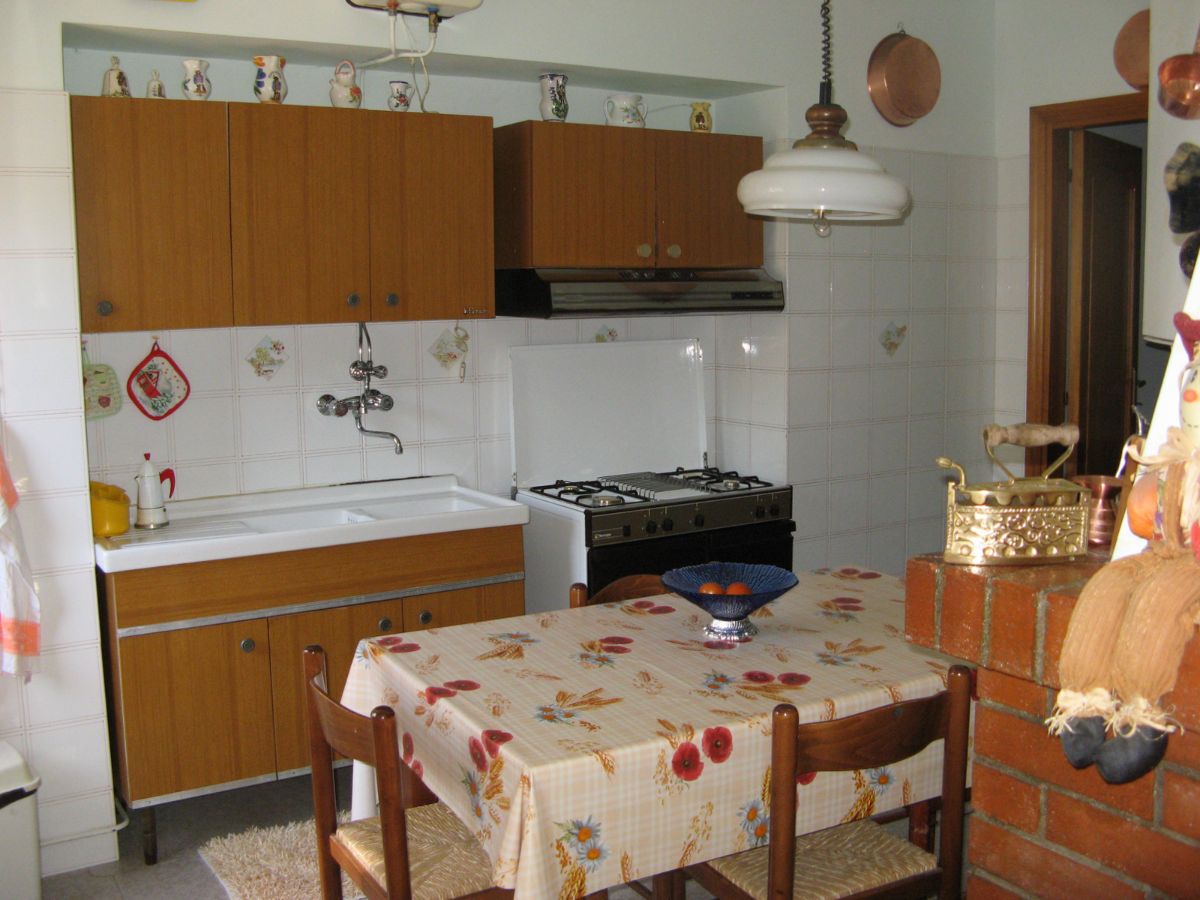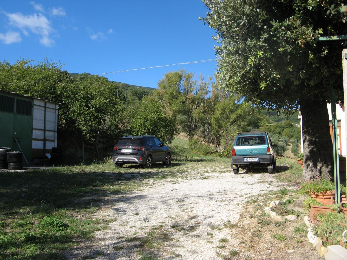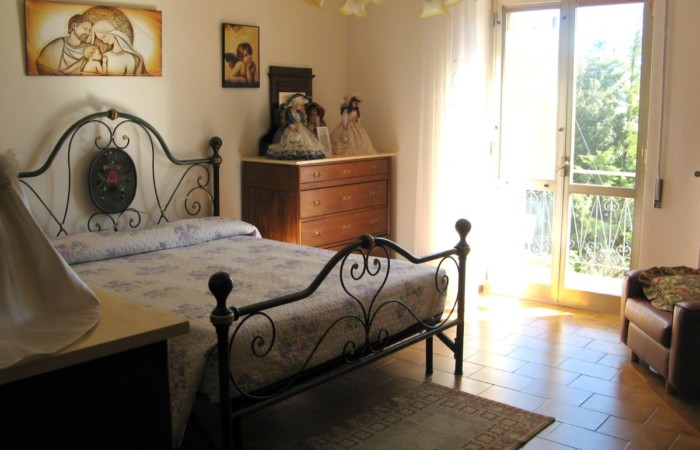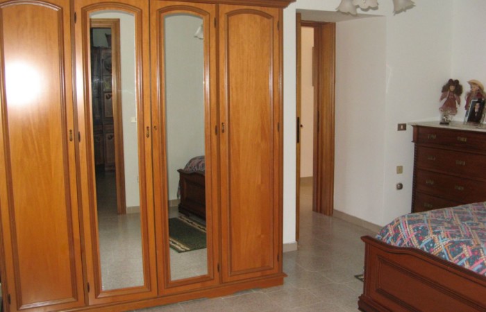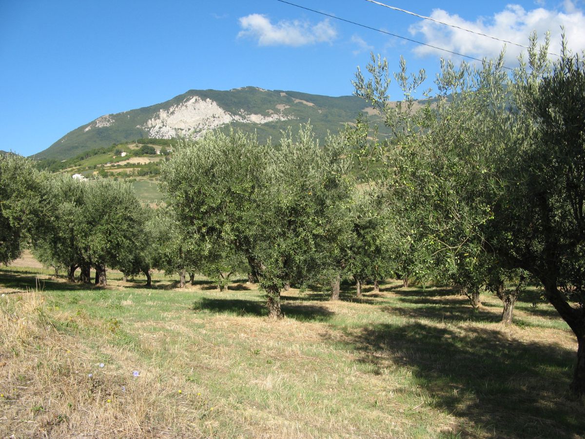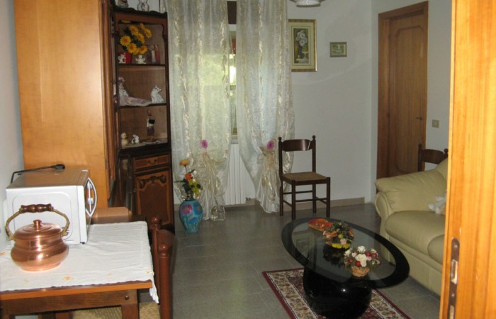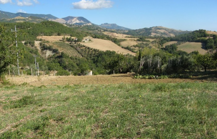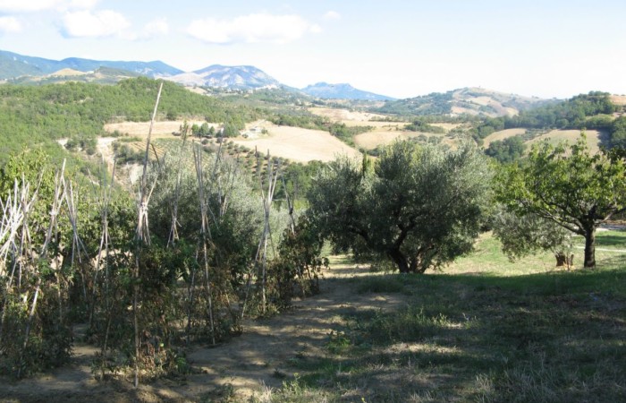 Casa di due livelli risultante dalla fusione di tre unità in schiera (200 mq.l.), ristrutturata ed ultimata nel 1990. La casa è disposta su un leggero pendio ed ha quindi il piano terra totalmente occupato dall’ abitazione (con 2 camere da letto ed 1 bagno) mentre il piano seminterrato è occupato da cantine e locali di servizio. Contigua alla casa è presente un’altra proprietà non abitata (eventualmente acquistabile da altro proprietario) che condivide la strada di accesso e la corte antistante l’ingresso. Davanti alla casa a valle un grande spazio recintato con diversi annessi e locali di utilità (146 mq). I terreni seminativi sono soprattutto alle spalle nel settore rialzato mentre inferiormente si estendono gli oliveti con 123 piante produttive (tot. 11.235 mq).