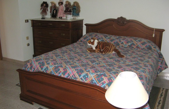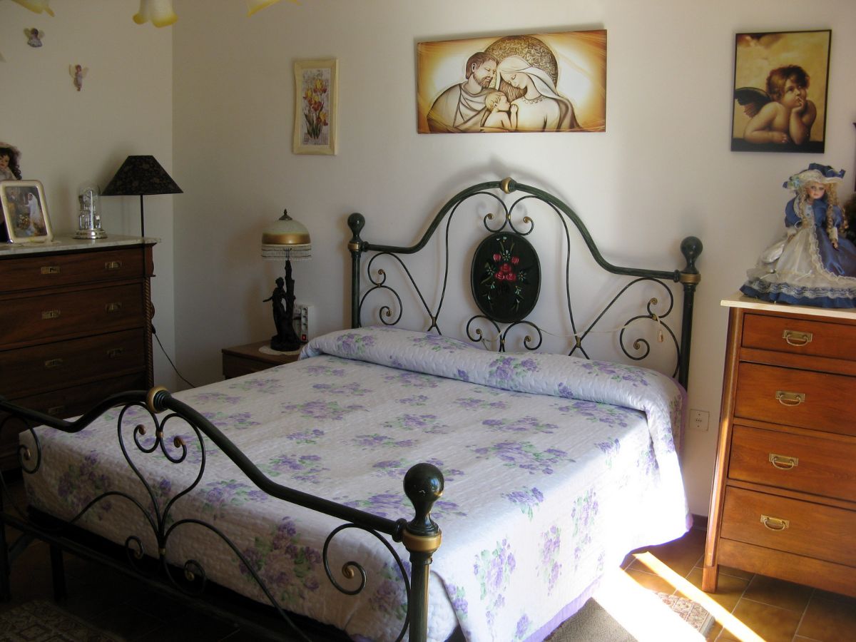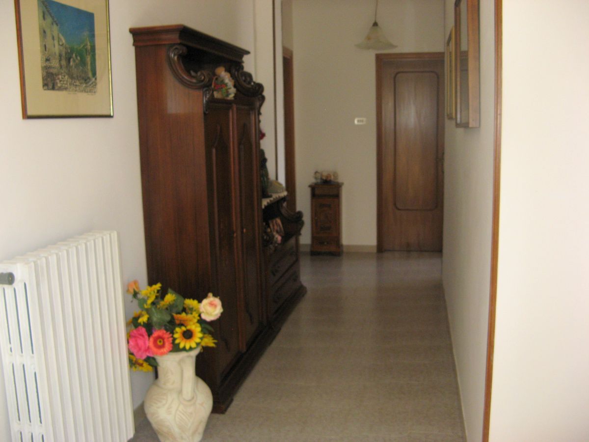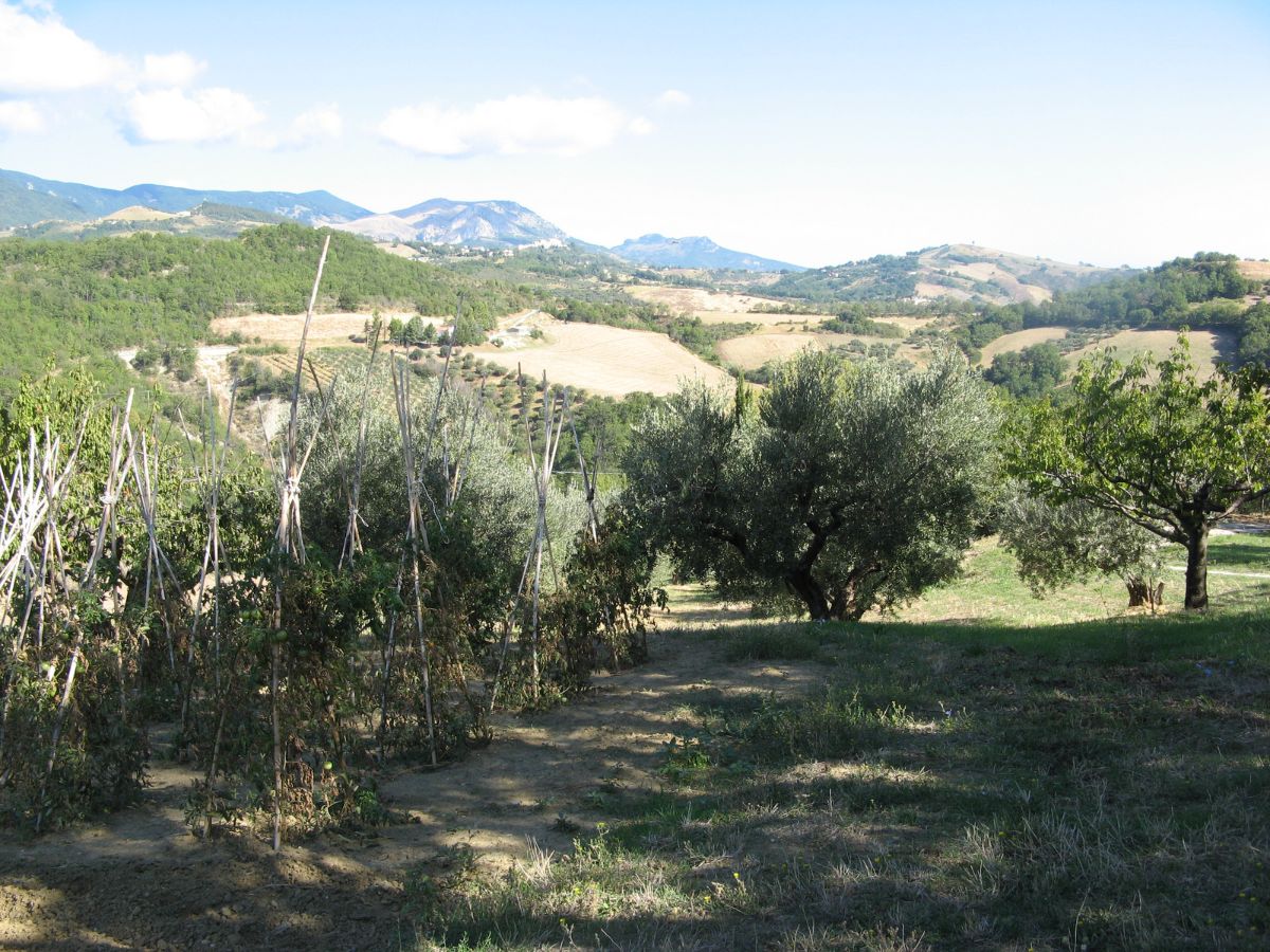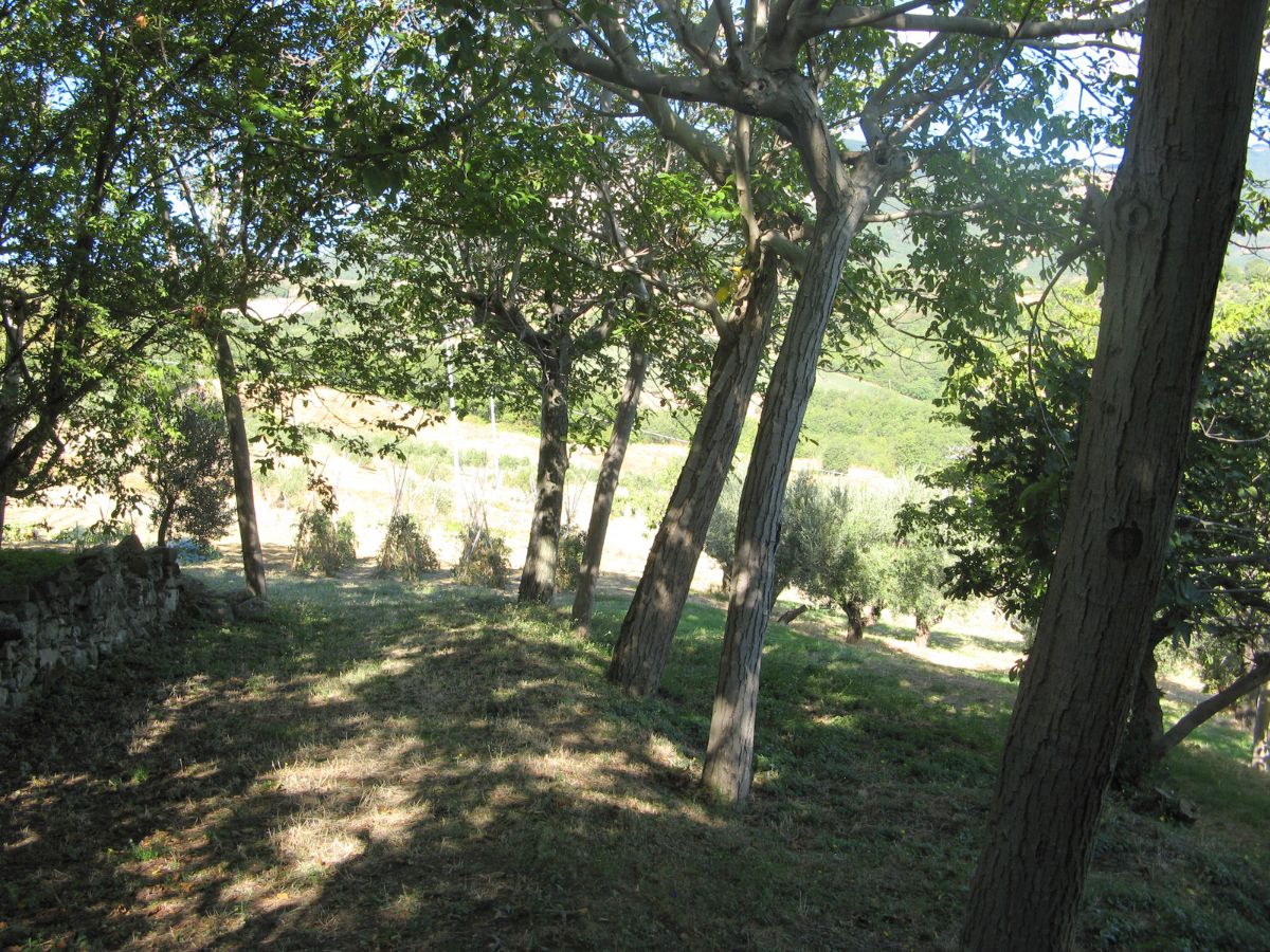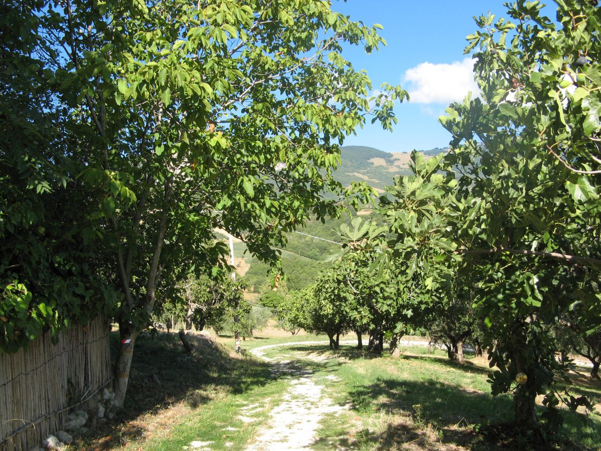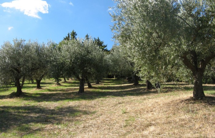 Casa di due livelli risultante dalla fusione di tre unità in schiera (200 mq.l.), ristrutturata ed ultimata nel 1990. La casa è disposta su un leggero pendio ed ha quindi il piano terra totalmente occupato dall’ abitazione (con 2 camere da letto ed 1 bagno) mentre il piano seminterrato è occupato da cantine e locali di servizio. Contigua alla casa è presente un’altra proprietà non abitata (eventualmente acquistabile da altro proprietario) che condivide la strada di accesso e la corte antistante l’ingresso. Davanti alla casa a valle un grande spazio recintato con diversi annessi e locali di utilità (146 mq). I terreni seminativi sono soprattutto alle spalle nel settore rialzato mentre inferiormente si estendono gli oliveti con 123 piante produttive (tot. 11.235 mq).