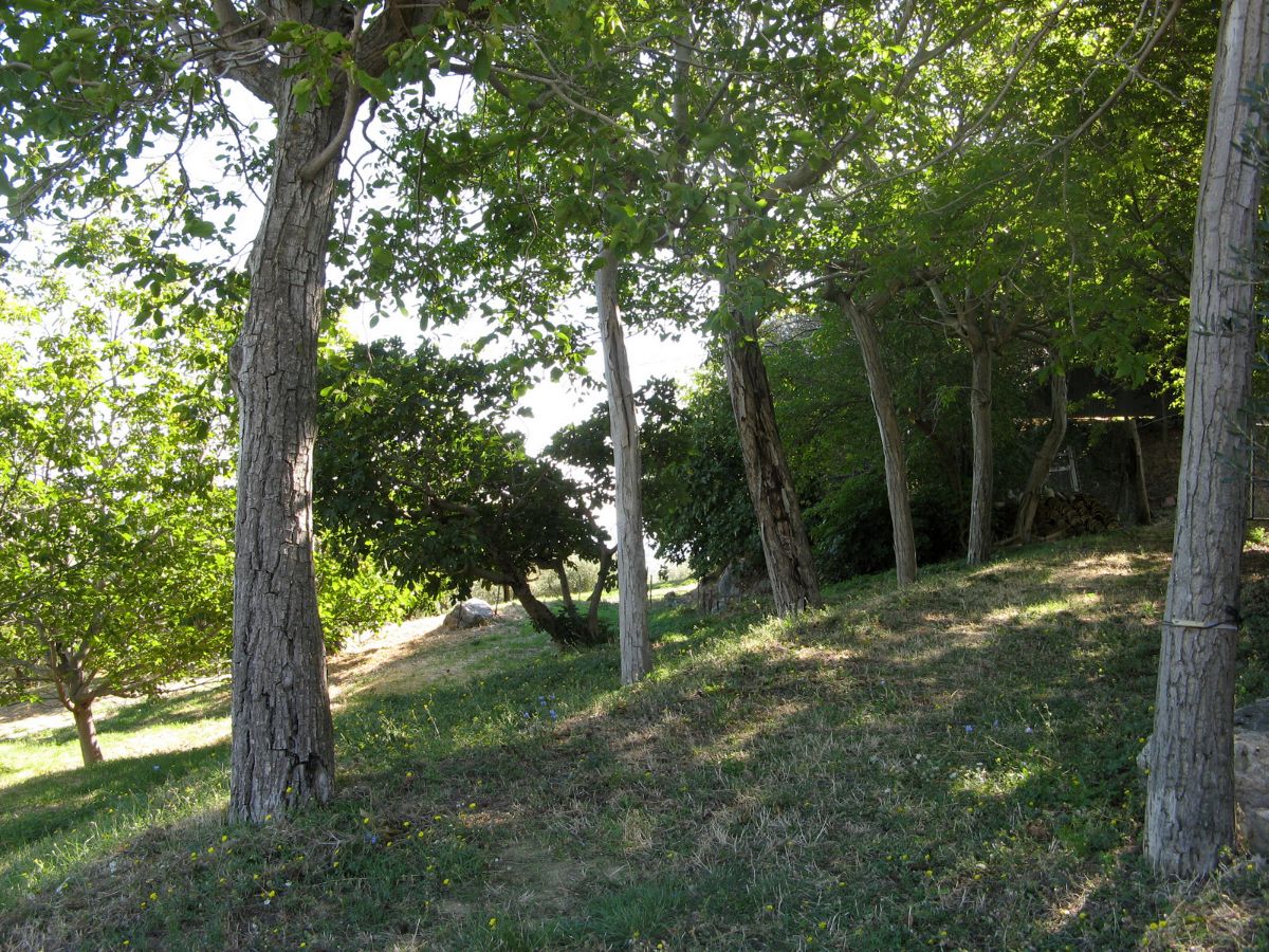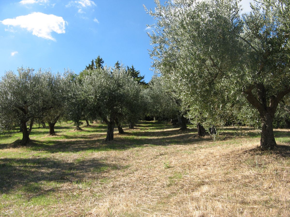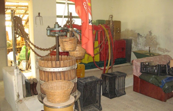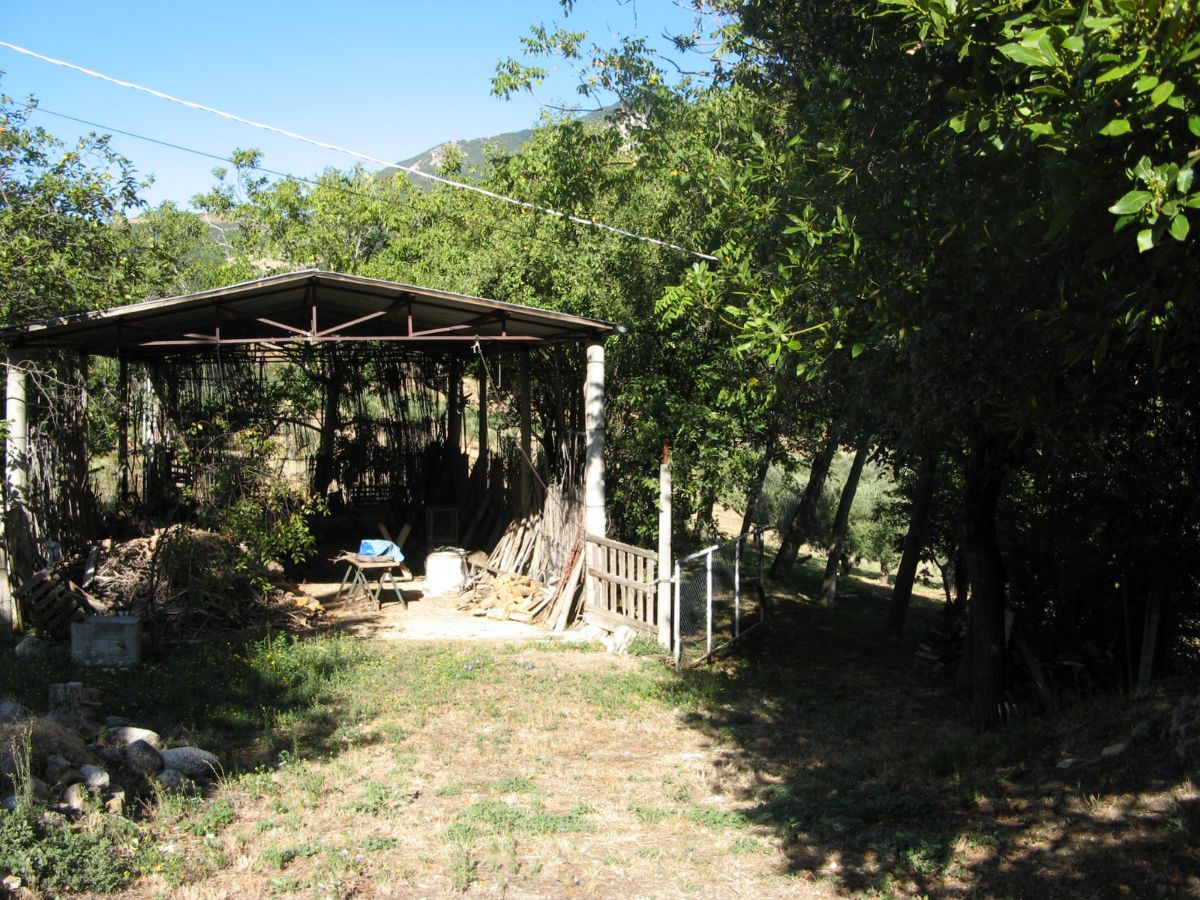 This two-story house, resulting from the merger of three terraced units (200 sq m), was renovated and completed in 1990. The house is located on a slight slope, so the ground floor is entirely occupied by the living area (with two bedrooms and one bathroom), while the basement contains cellars and utility rooms. Adjacent to the house is another uninhabited property (possibly for purchase from another owner) that shares the access road and the courtyard in front of the entrance. In front of the house, facing downhill, is a large fenced space with several outbuildings and utility rooms (146 sq m). The arable land is primarily behind the house on the raised level, while the olive groves extend below, with 123 productive trees (total 11,235 sq m).