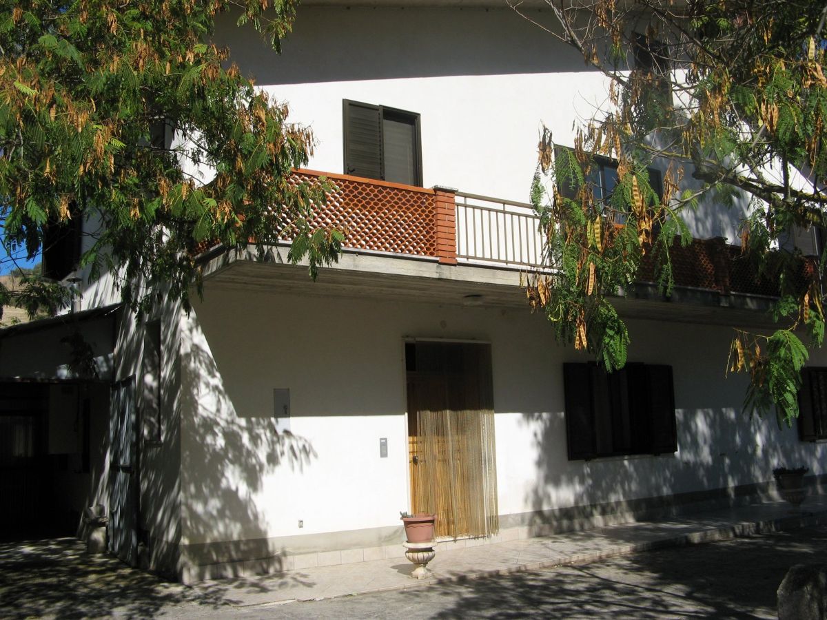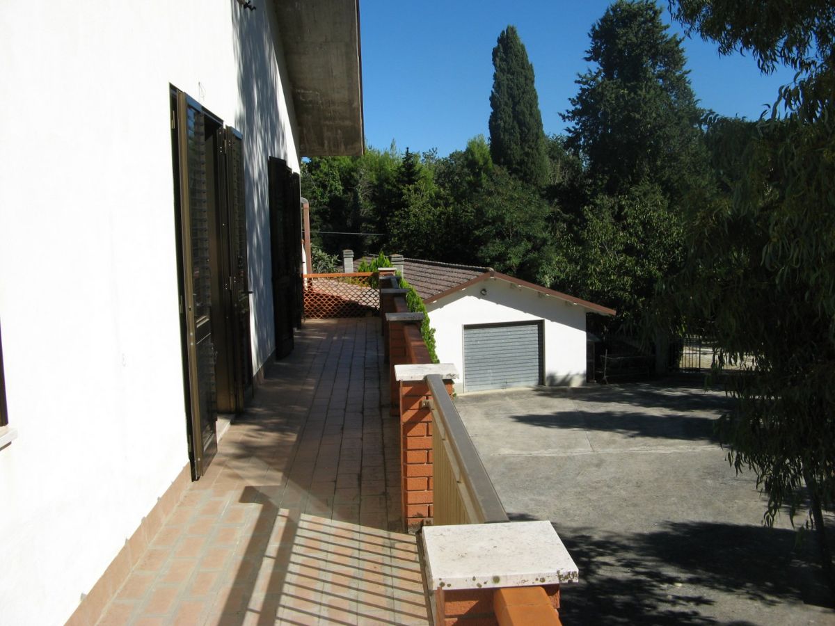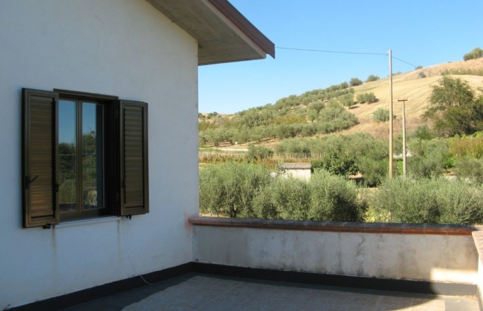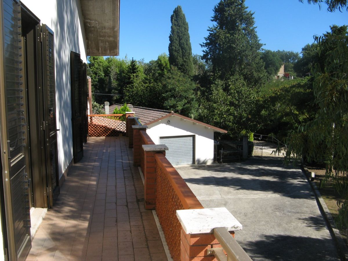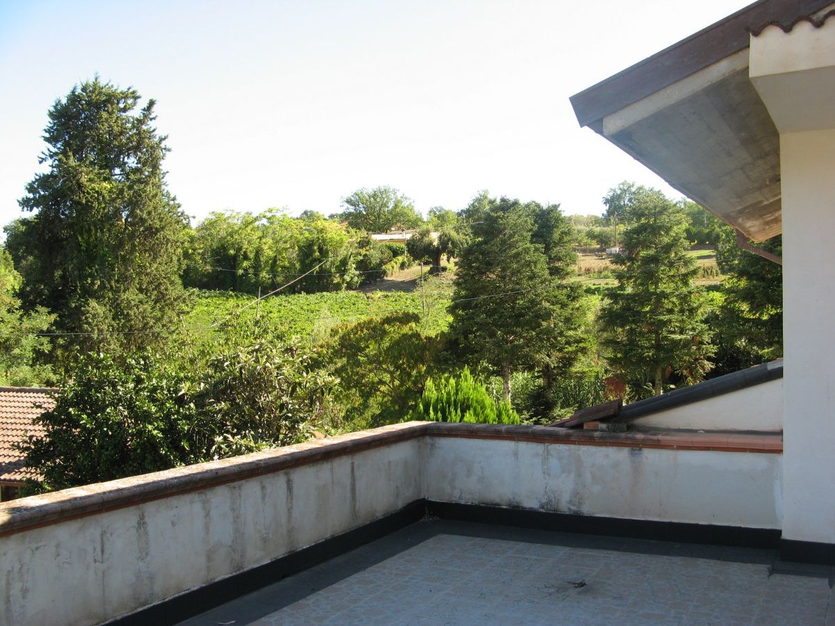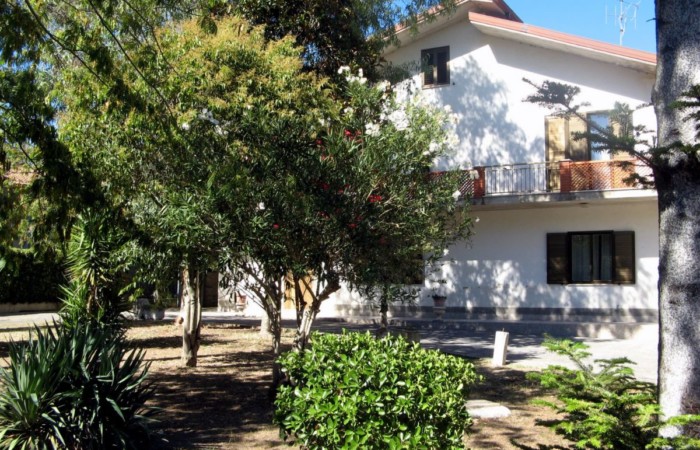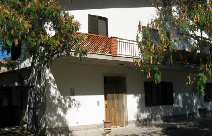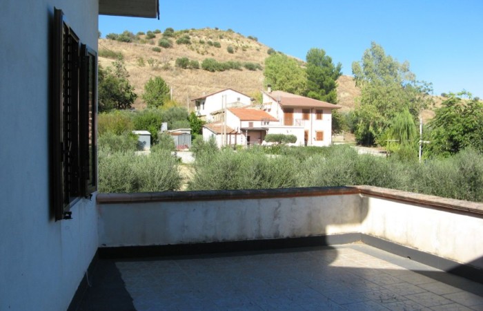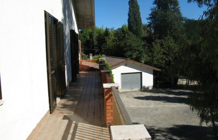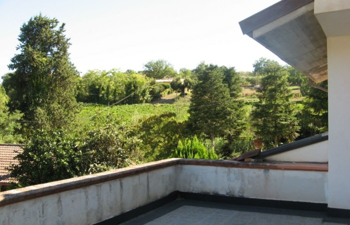 Grande villa con terrazzo, annessi e terreno in un’ area verdeggiante nei pressi del paese.