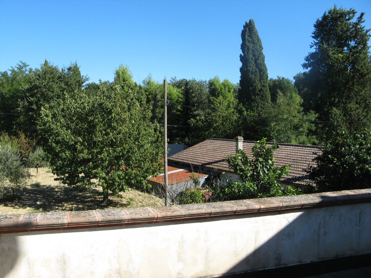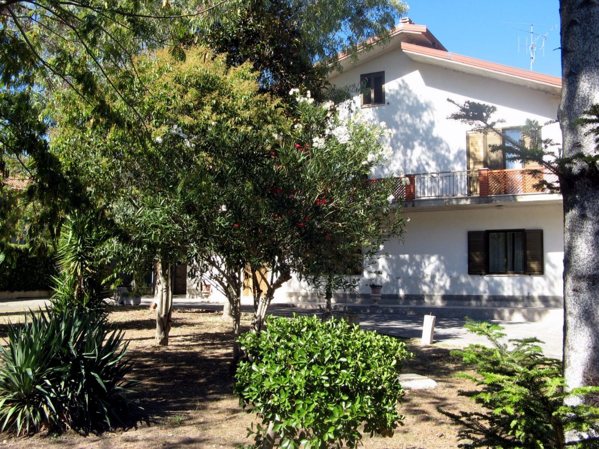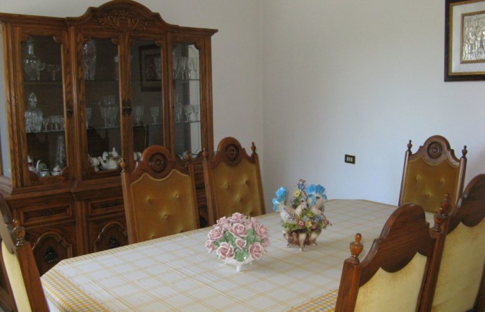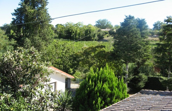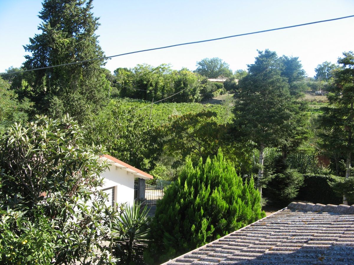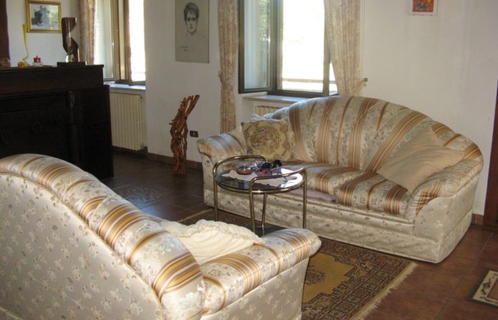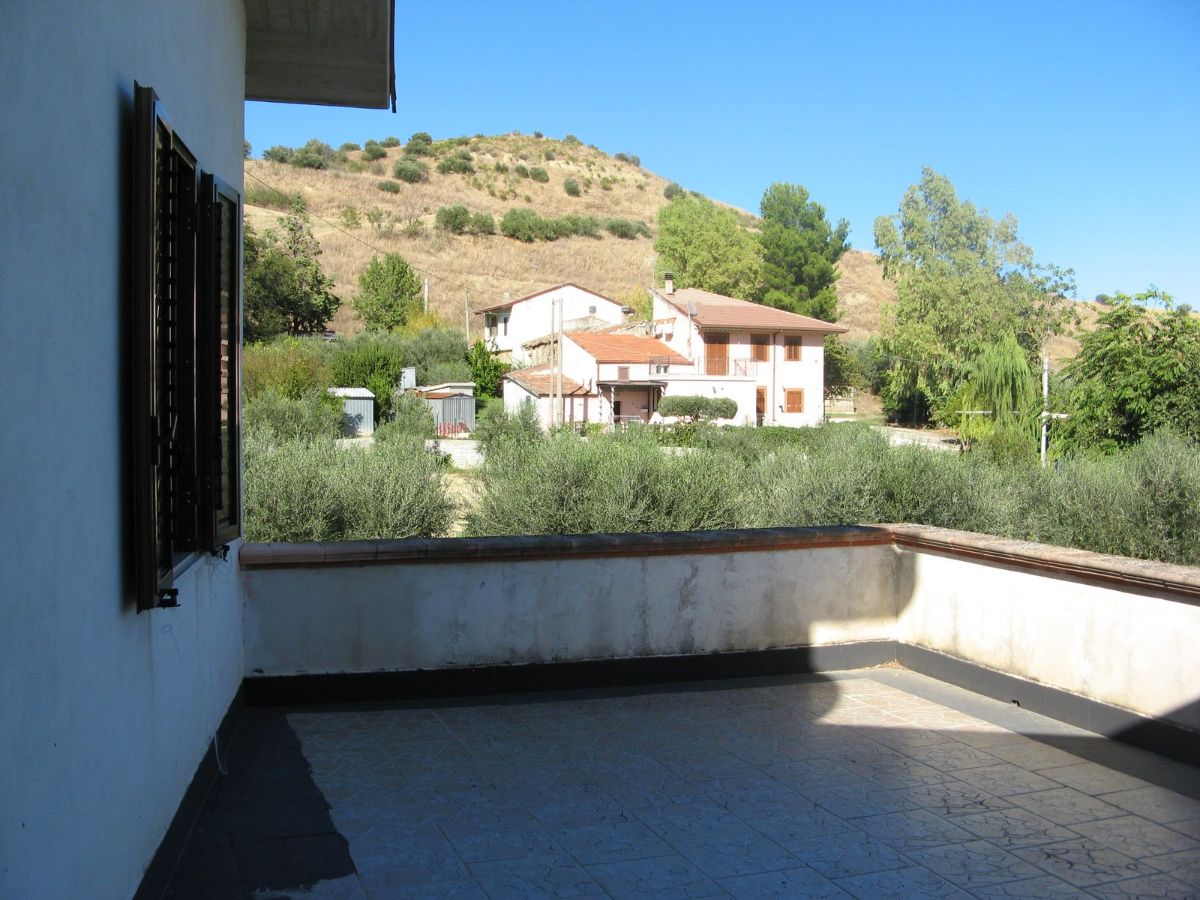 Grande villa con terrazzo, annessi e terreno in un’ area verdeggiante nei pressi del paese.