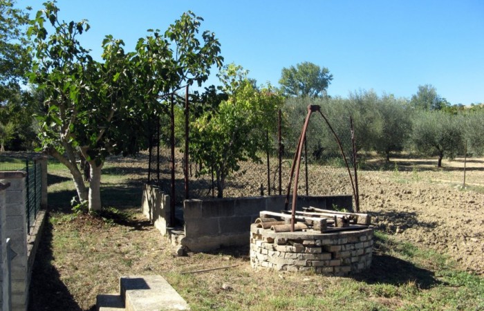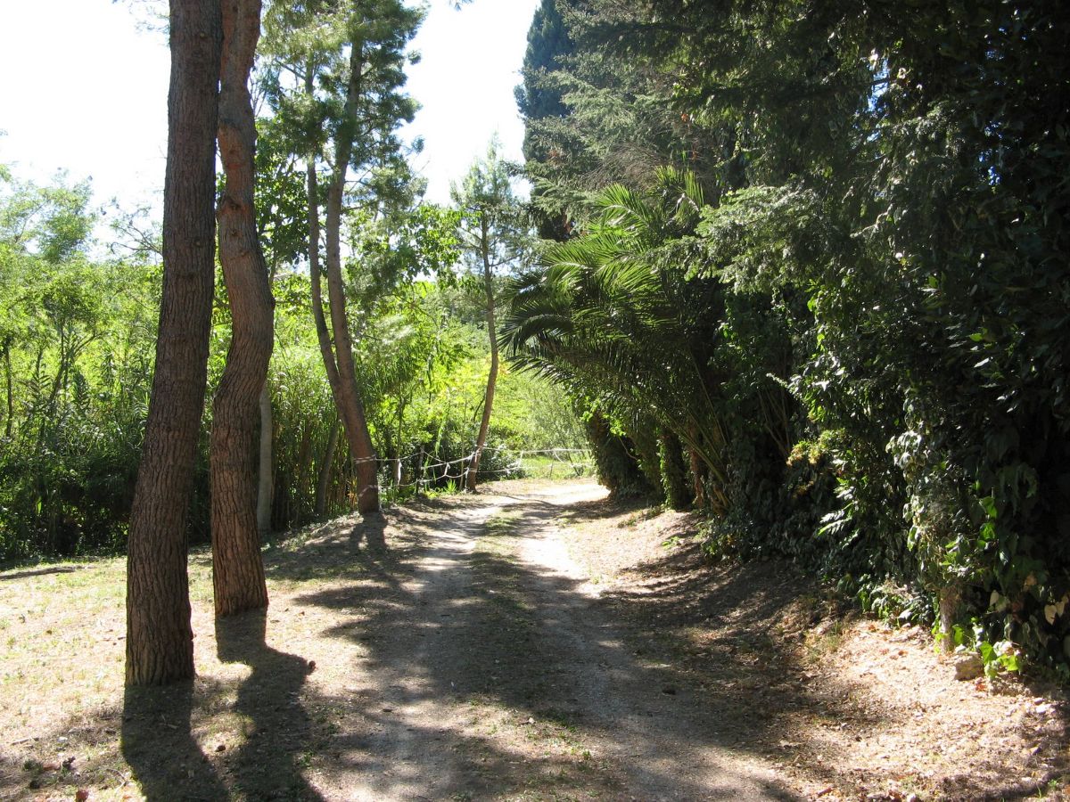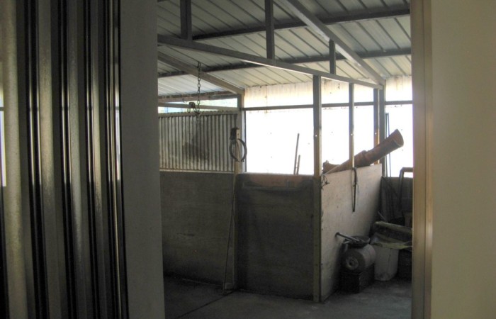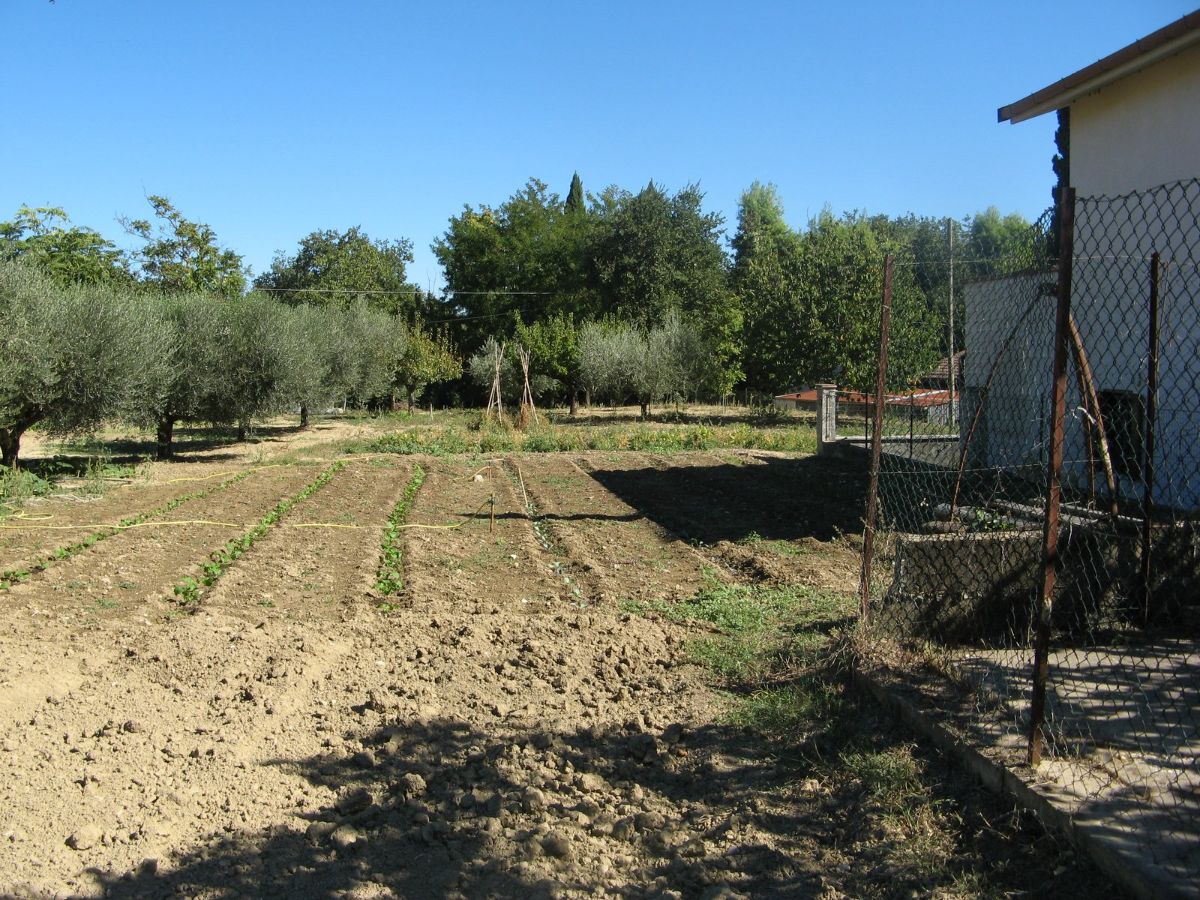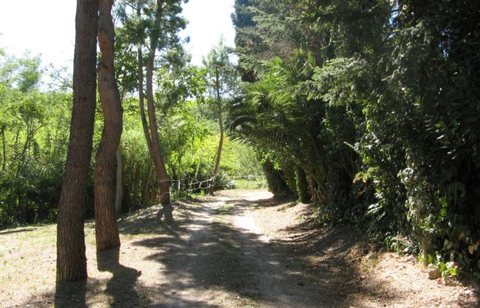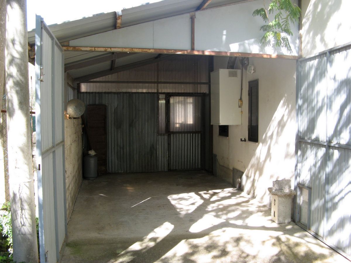 Within the fenced area is a large warehouse, divided into a garage, cellar, and storage room with a high exposed roof of iron beams and bricks. This warehouse could also be converted into a living space through a change of use. The warehouse, on the opposite side of the villa, faces a large plot of land with an additional independent gated access. Outside the fenced area, there is some grassy land with tall trees to the front, and a plot of land to the rear with some fruit trees and arable land (which can also be irrigated with reclaimed water) suitable for a lush vegetable garden.