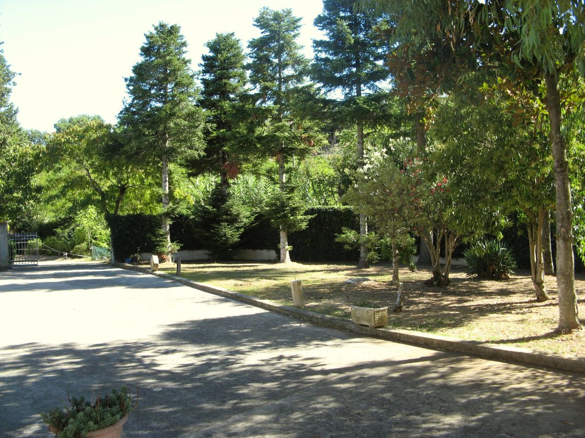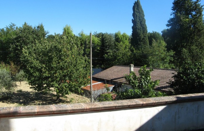 Large villa with terrace, outbuildings, and land in a green area near the town.