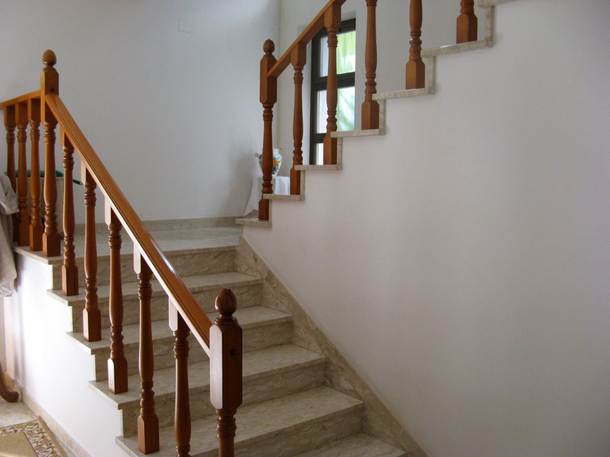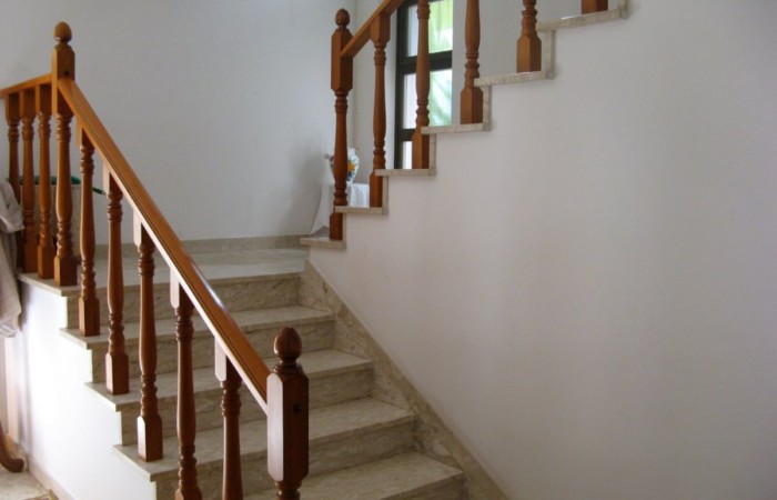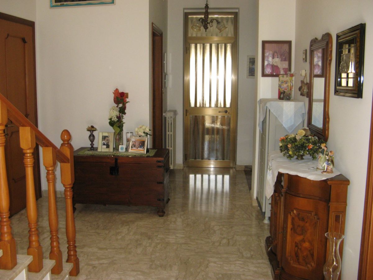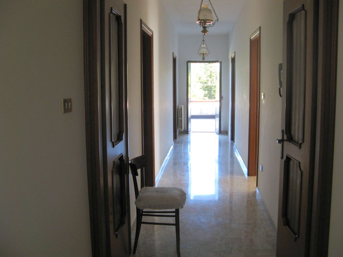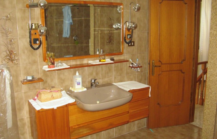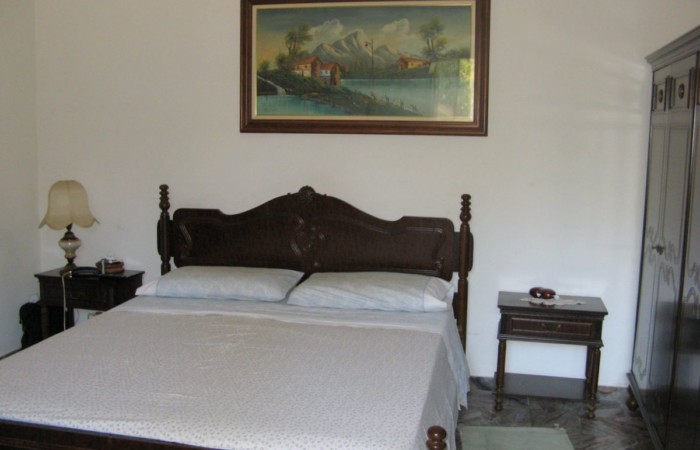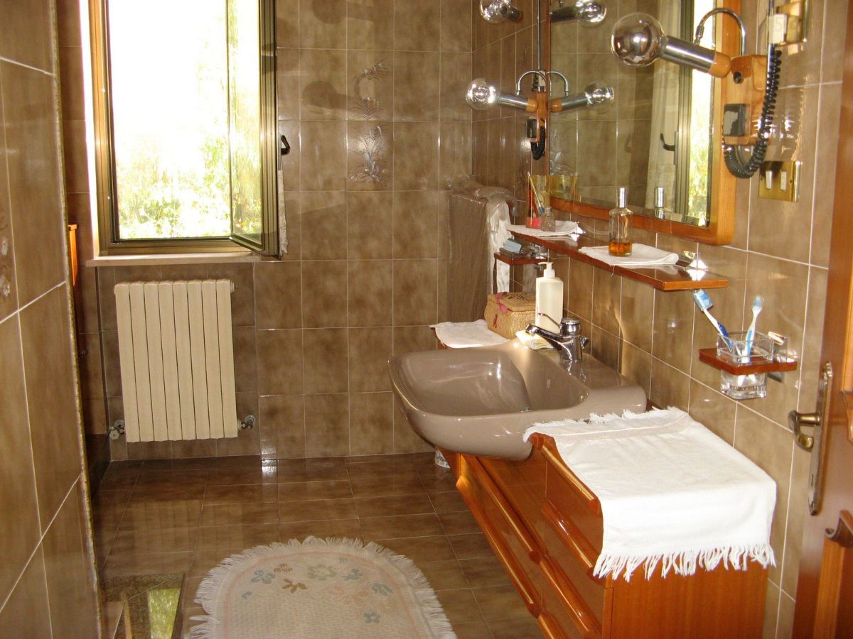 The property is accessed via two sliding gates, one of which is automated, and leads to a lush, partially paved garden with tall trees and decorative plants that fronts the two-story villa. The façade is adorned with a side portico, a long balcony, and a gabled roof that identifies a gable with a high attic. The villa has two entrances on the ground floor on opposite sides of the façade. From the portico, you enter a beautiful living room featuring a bar area with wooden furniture made by a local craftsman. You can then proceed to the dining room and kitchen, or proceed along the long corridor that opens onto another large living room with a fireplace, followed (currently) by an open-plan bedroom; at the end, a bathroom with a bathtub. The entrance on the left of the façade leads directly to a foyer with a storage room that connects to the long corridor and, more importantly, the start of the beautiful marble staircase with a wooden banister that leads to the upper floor. The first floor immediately features a luxurious and comfortable bathroom with a bathtub, followed by a long corridor leading to three large bedrooms, two of which have balconies, and a dining room/study. The corridor ends on a remarkable terrace that offers panoramic views of the surrounding area. Next to the villa is a first garage and a series of utility rooms.