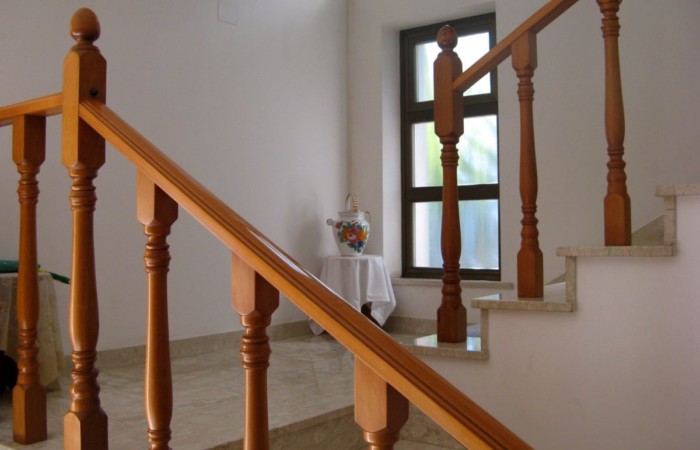 La struttura è in buone condizioni, necessaria solo la riparazione di una fessura di giunzione esterna e di un pavimento in una camera da letto al piano superiore. L’impianto di riscaldamento è con radiatori a parete alimentati da caldaia a gas con bombole (anche per fornitura acqua calda sanitaria) o con caldaia a gas GPL (bombolone da ripristinare) o con caldaia a biomasse (da riattivare), infine utili anche i camini a legna. I pavimenti sono in prezioso marmo variegato ceramiche. Gli infissi esterni sono in alluminio color marrone e le finestre hanno doppi vetri, zanzariere e persiane di chiusura. Cablatura telefonica e TV in molte stanze.