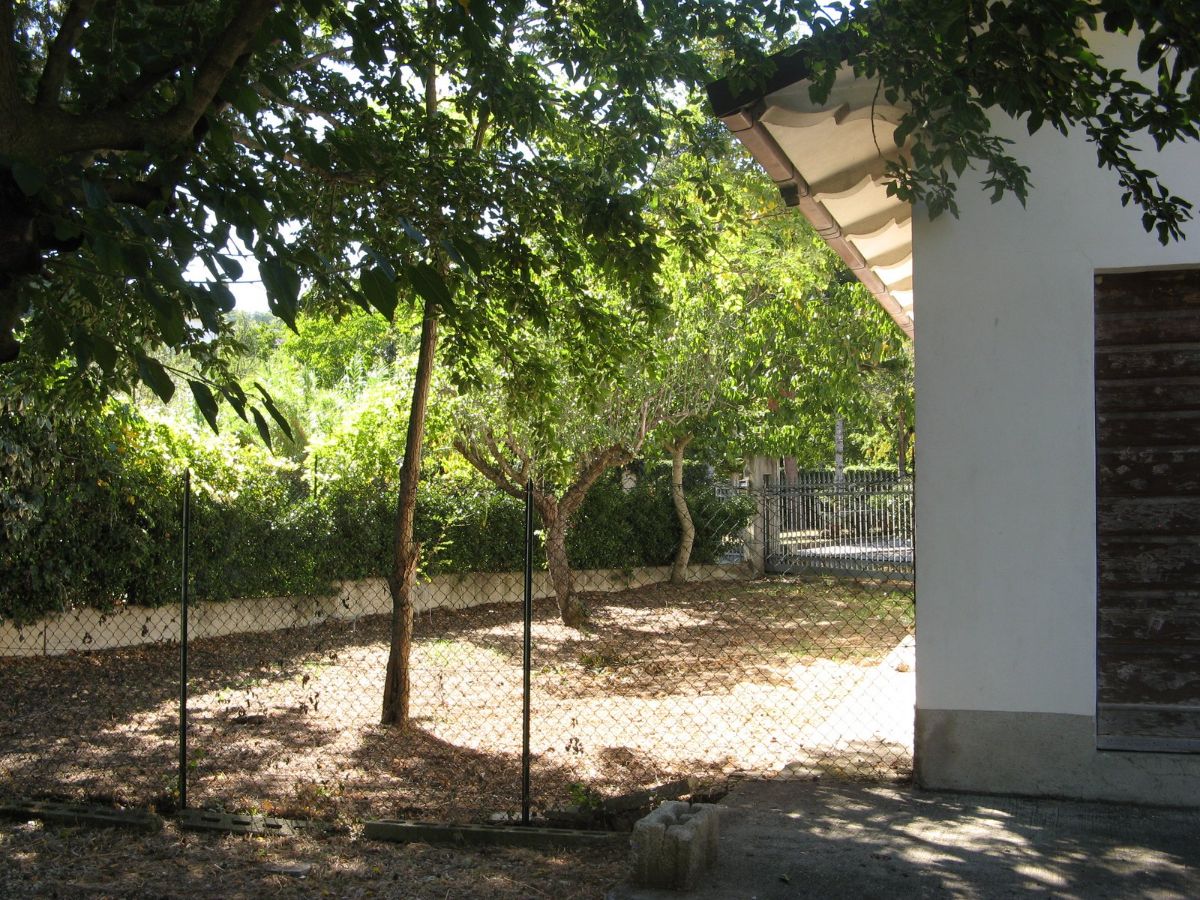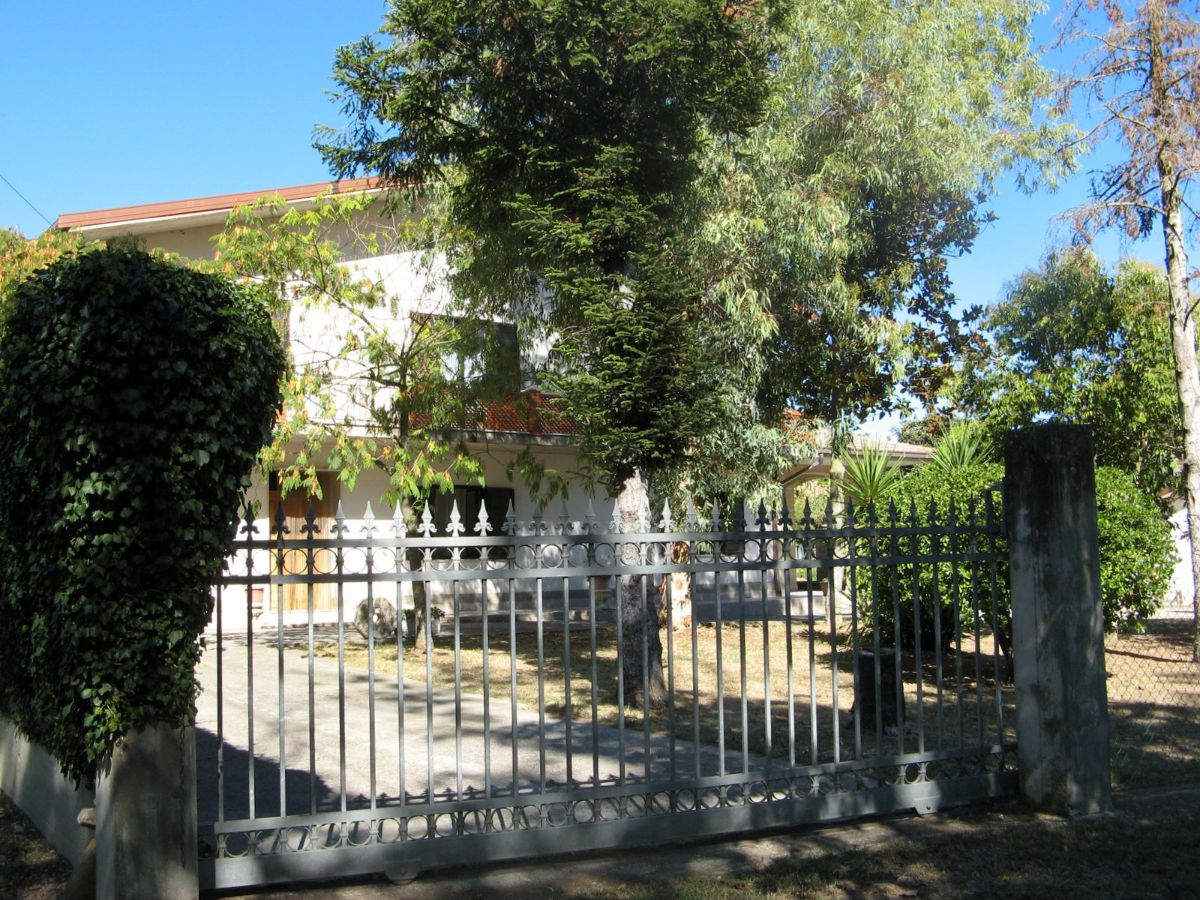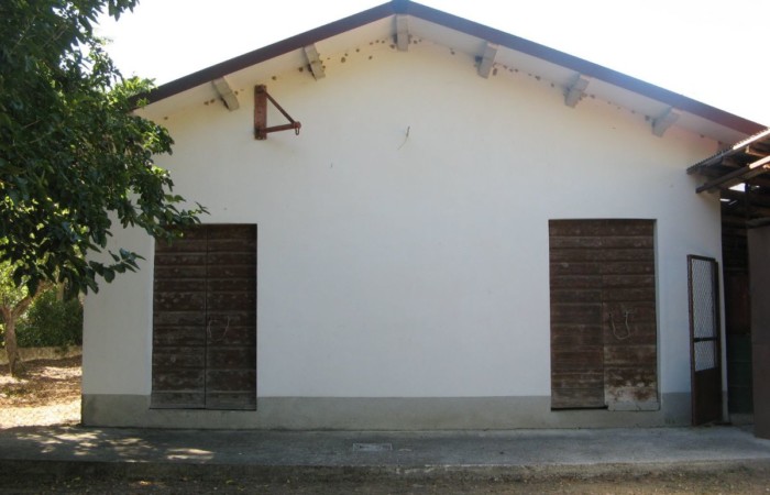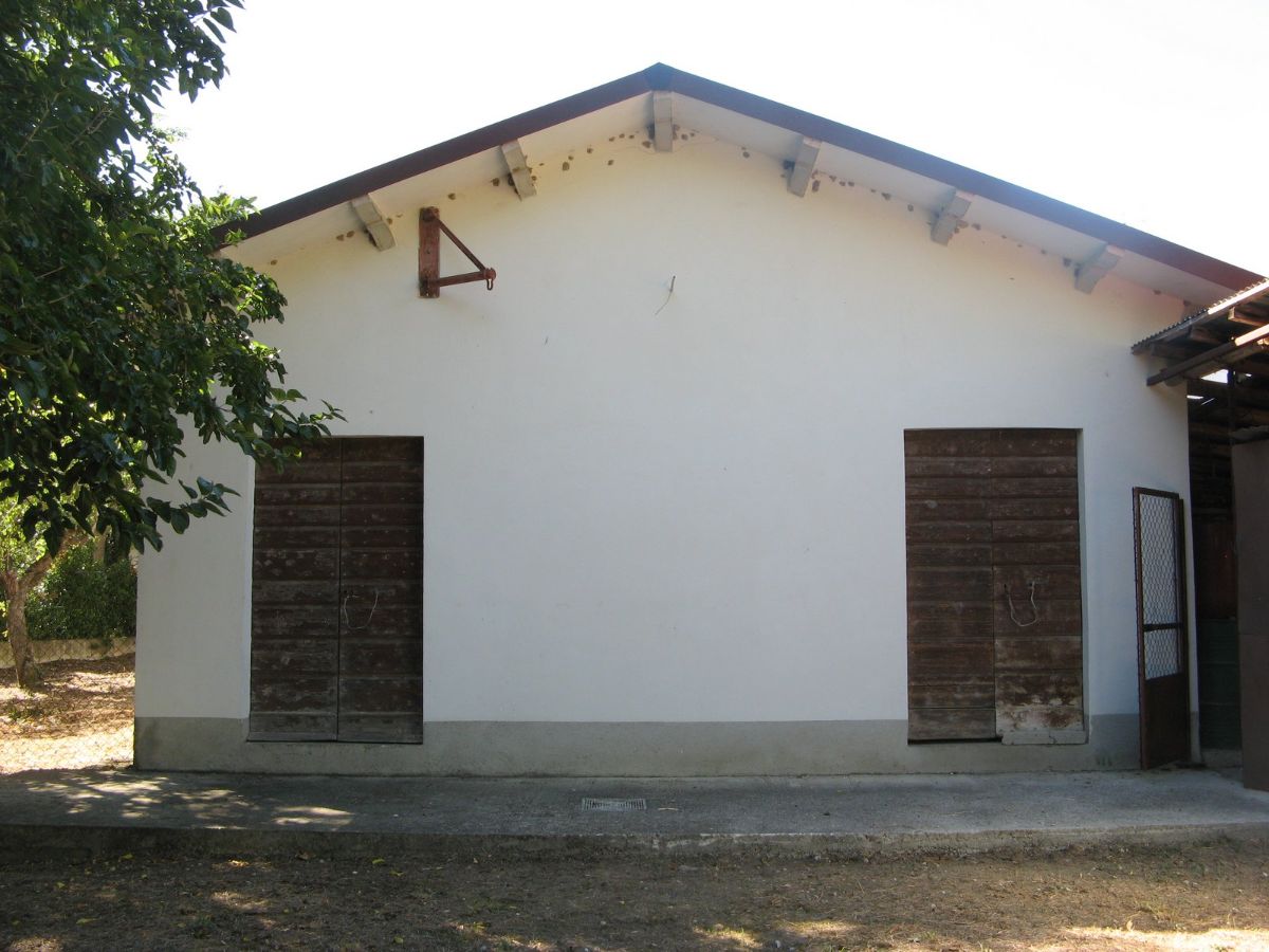 All’interno dell’area recintata si incontra un grande magazzino, suddiviso in realtà in rimessa, cantina e locale di deposito con alto tetto a vista di travi di ferro e laterizi che si presterebbe anche ad essere convertito ad ambiente abitativo attraverso richiesta di cambio di destinazione d’uso. Il magazzino, dal lato opposto alla villa è fronteggiato da un ampio terreno che ha anche un ulteriore accesso autonomo con cancello. Al di fuori dell’ area recintata sono presenti sul davanti alcuni terreni erbosi con alti alberi e posteriormente un terreno con alcuni alberi da frutta e seminativo (irrigabile anche con acqua di bonifica) adatto alla realizzazione di un rigoglioso orto.