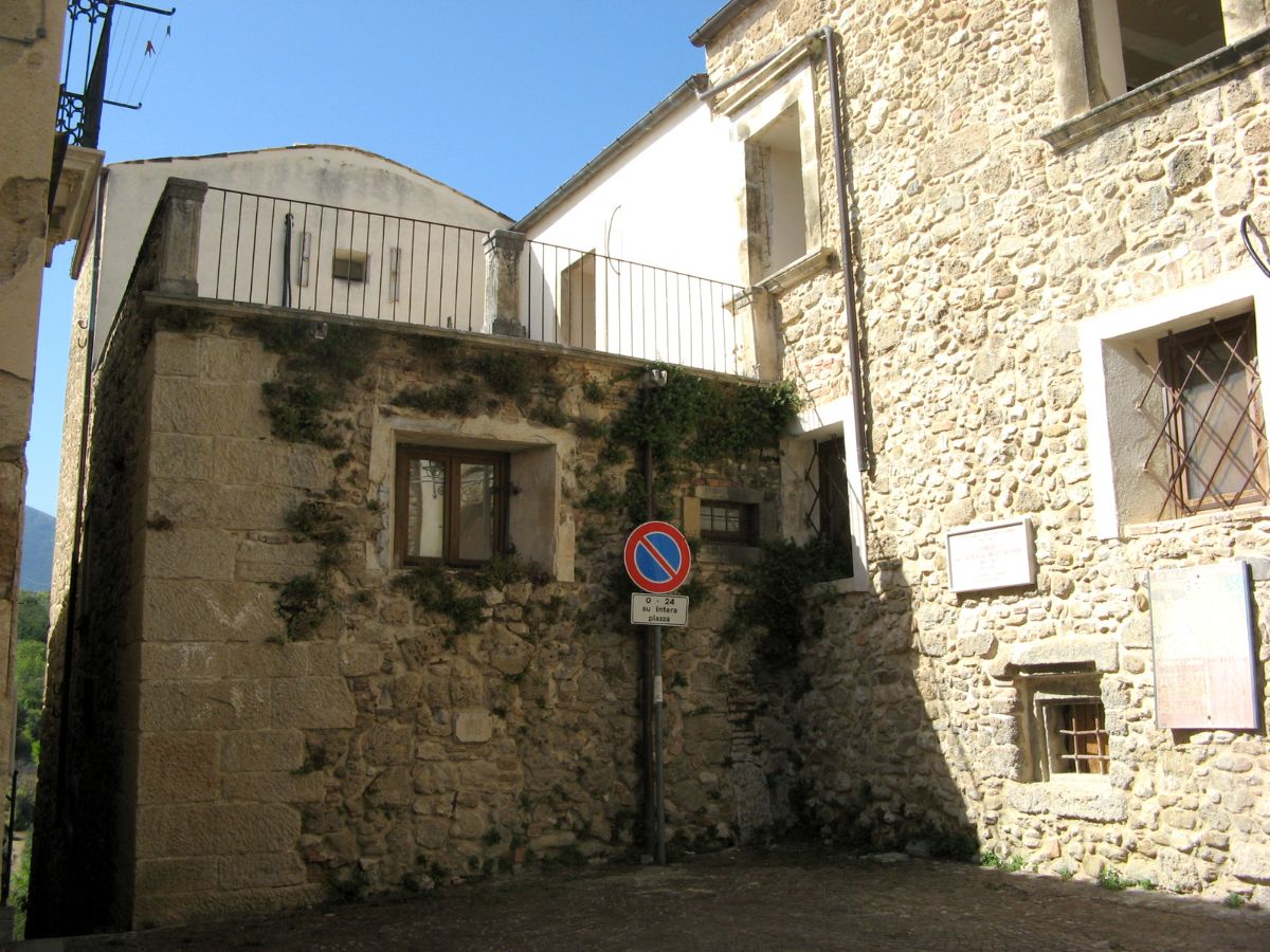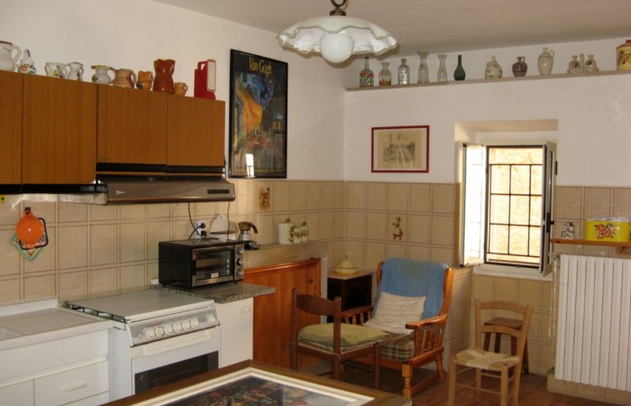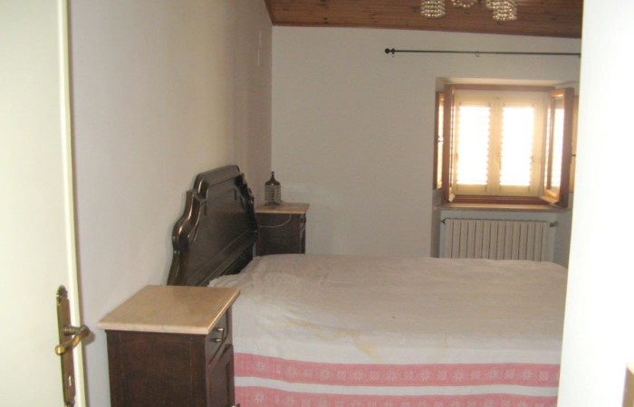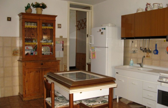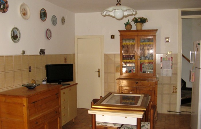 Casa a schiera di testa su due livelli (135 mq), in pieno Centro Storico proprio davanti l’ingresso del monumentale Palazzo Castello del XVIII Secolo. La casa ad angolo, originariamente in pietra, ha due facciate libere, è stata ristrutturata in anni recenti, è raggiungibile in auto (garage), è arredata e subito abitabile (2 camere da letto, 1 cameretta e 2 bagni). L’ingresso è sulla piazzetta davanti al Castello e con qualche gradino si accede all’ ampia cucina abitabile, ben attrezzata e dotata anche di un camino a parete. In fondo alla cucina è presente un piccolo bagno di servizio che sfrutta lo spazio del sottoscala. Dalla cucina si passa al soggiorno/sala da pranzo con ampie superfici vetrate e con un utile divano letto. Dalla cucina sale la scala in muratura che porta al piano superiore caratterizzato dal sottotetto rivestito in legno in tutte le stanze. Si incontrano due camere da letto con balconcini verso la facciata del Castello, una cameretta ed il bagno principale con vasca/doccia.