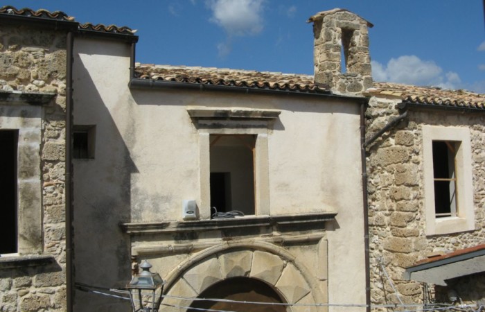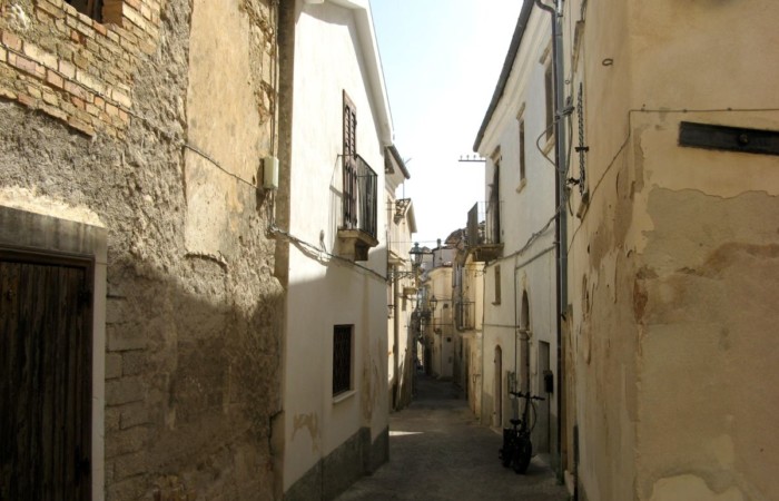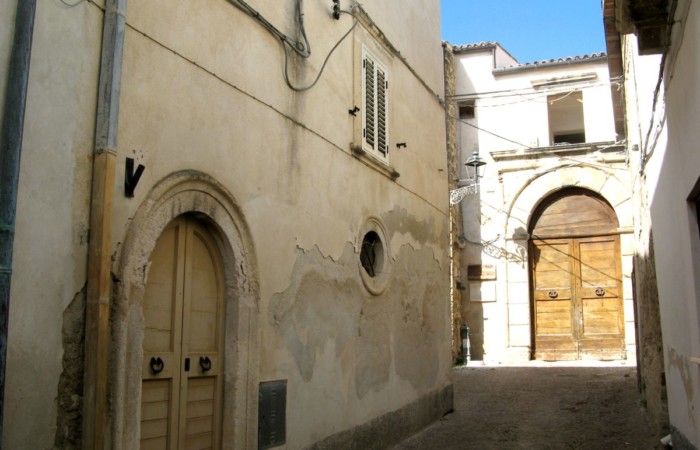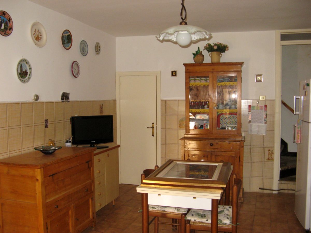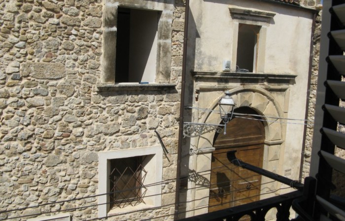 Two-level end-terraced house (135 sq m) in the historic center, directly opposite the entrance to the monumental 18th-century Palazzo Castello. The corner house, originally built of stone, has two open facades. It has been recently renovated, is accessible by car (garage), and is furnished and ready to move into (2 bedrooms, 1 small bedroom, and 2 bathrooms). The entrance is on the small square in front of the castle, and a few steps lead to the large, well-equipped eat-in kitchen, complete with a wall-mounted fireplace. At the end of the kitchen is a small guest bathroom that utilizes the space under the stairs. From the kitchen, you enter the living/dining room with large windows and a useful sofa bed. From the kitchen, a masonry staircase leads to the upper floor, featuring a wood-paneled attic throughout. There are two bedrooms with balconies overlooking the castle facade, a small bedroom, and the main bathroom with tub/shower.