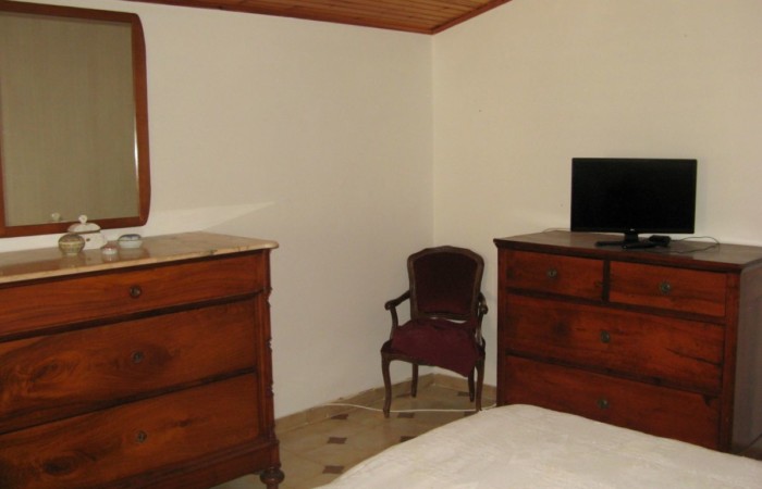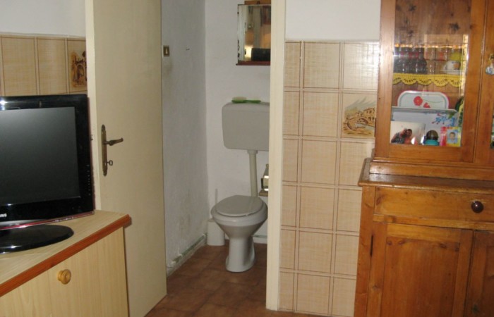 The garage (35 m2) has a stone portal and a wooden door with several doors. It can accommodate two cars in a row. The original stone slab flooring stands out, and electricity and water are connected.