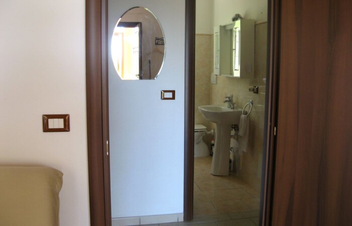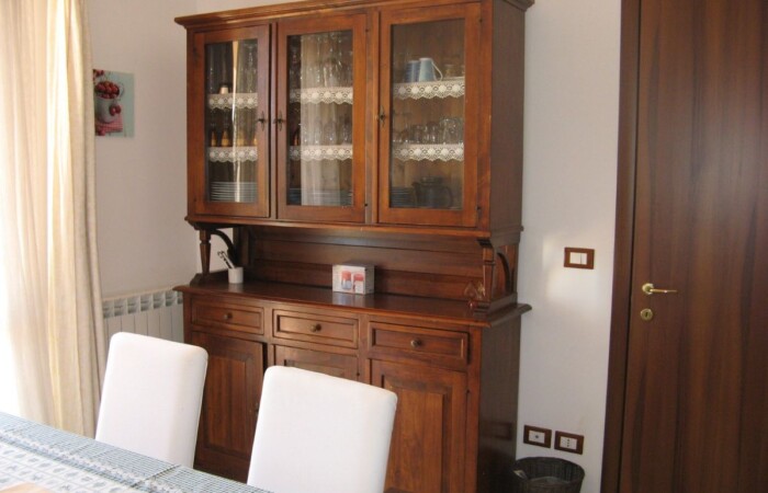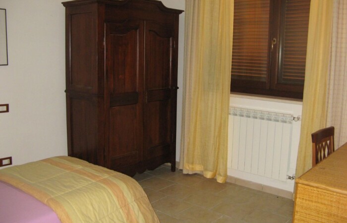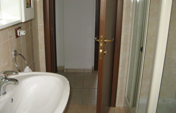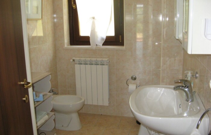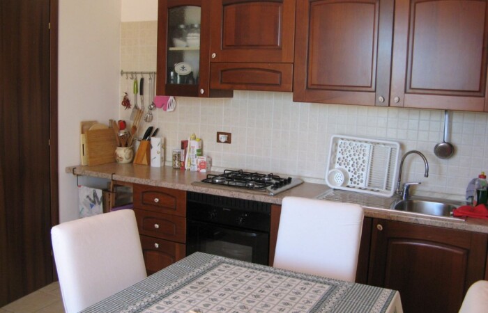 Il tetto della palazzina è in buone condizioni. L’impianto di riscaldamento dell’appartamento è con gas GPL (bombolone comune interrato), caldaia in alloggiamento separato nel portico e radiatori a parete. Gli infissi esterni ed interni sono tutti in legno e le finestre hanno ampio doppio vetro termico, zanzariere e persiane esterne di chiusura. Pavimenti in ceramica variegata.
