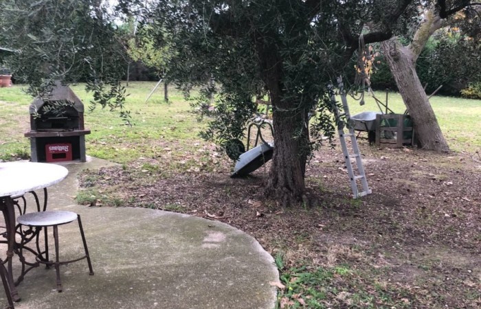 Il giardino è completamente recintato, ci sono alberi da frutto ed olivi secolari.